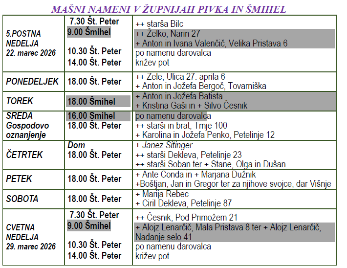 Povabljeni, da se kdaj med dnevom ustavite v cerkvi ter zmolite za Božje in Marijino varstvo!